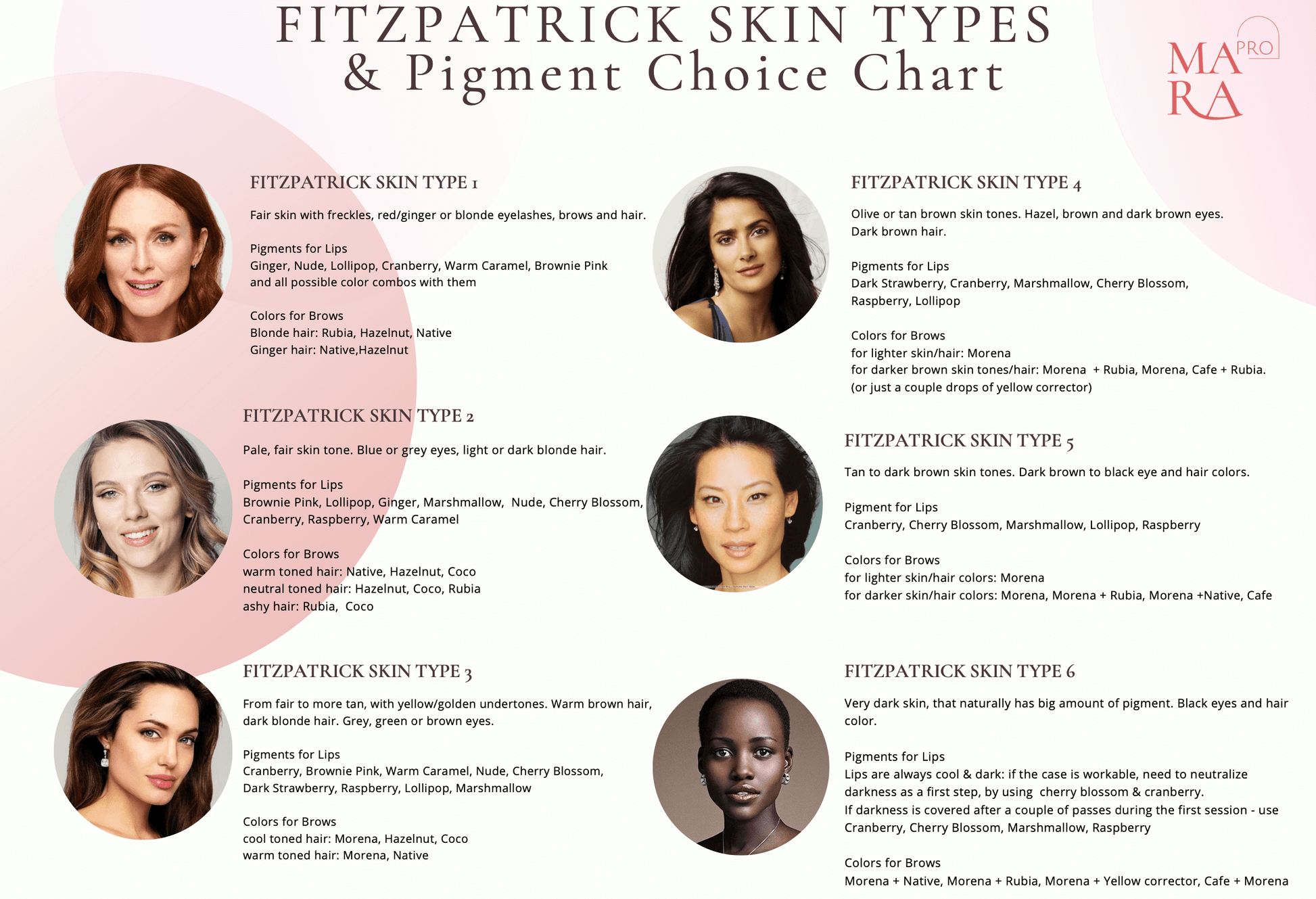 This set consists of 6 brow pigments for all 6 Fitzpatrick Skin Types and Complexions. And a guide on how we recommend using them.