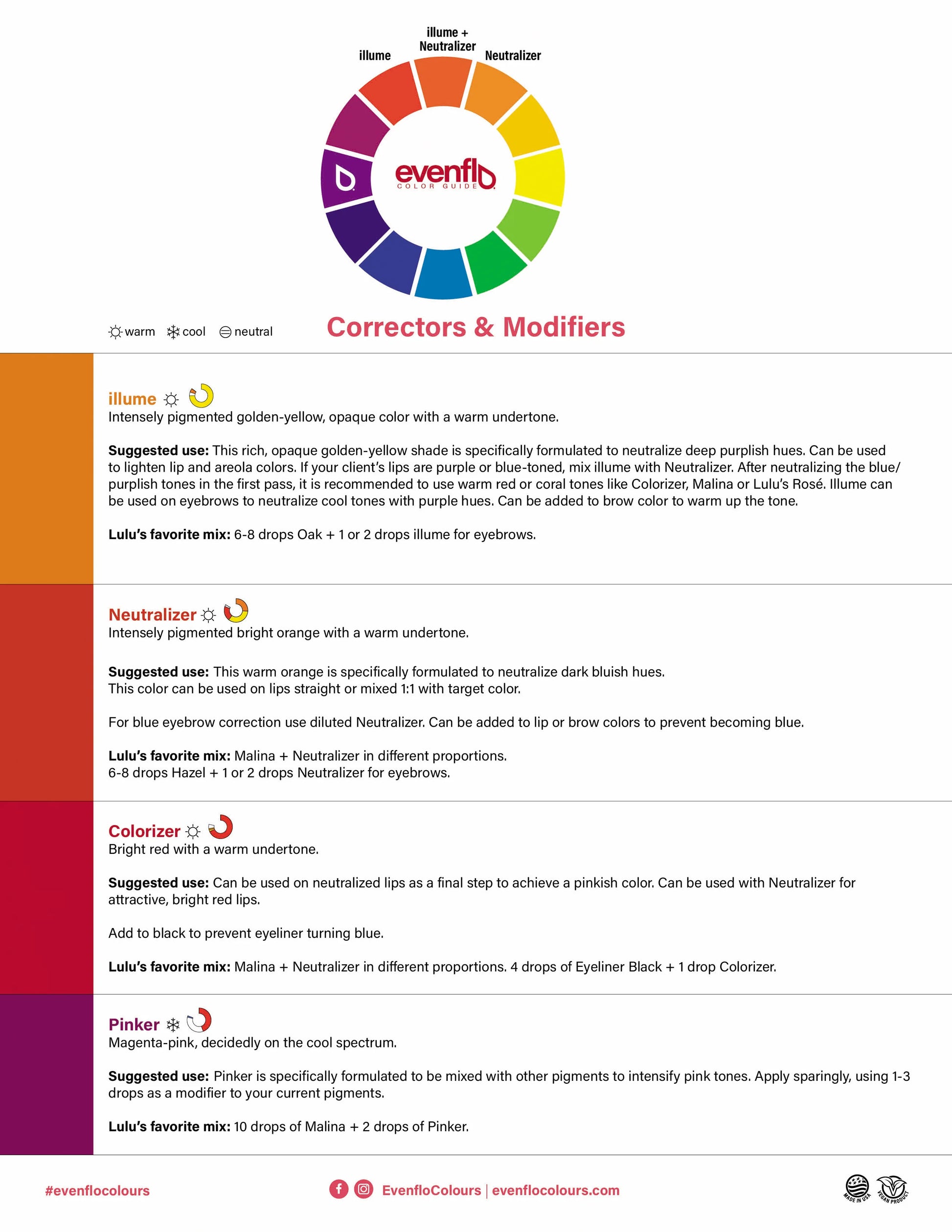 Born out of Lulu Siciliano's passion for her craft, Evenflo Colours is a custom palette that leaves all guesswork aside, letting you focus on what's important - results. These pigments deliver natural-looking results instantly. All pigments have gone through gamma ray sterilization, are vegan-friendly and cruelty-free.
